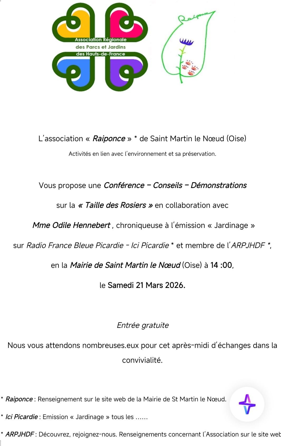 CONFÉRENCE ET ATELIER TAILLE ET ENTRETIEN DES ROSIERS 21 MARS 2026