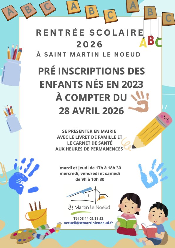 Les pré-inscriptions pour la rentrée 2026 se font en mairie, à partir du 28 avril 2026