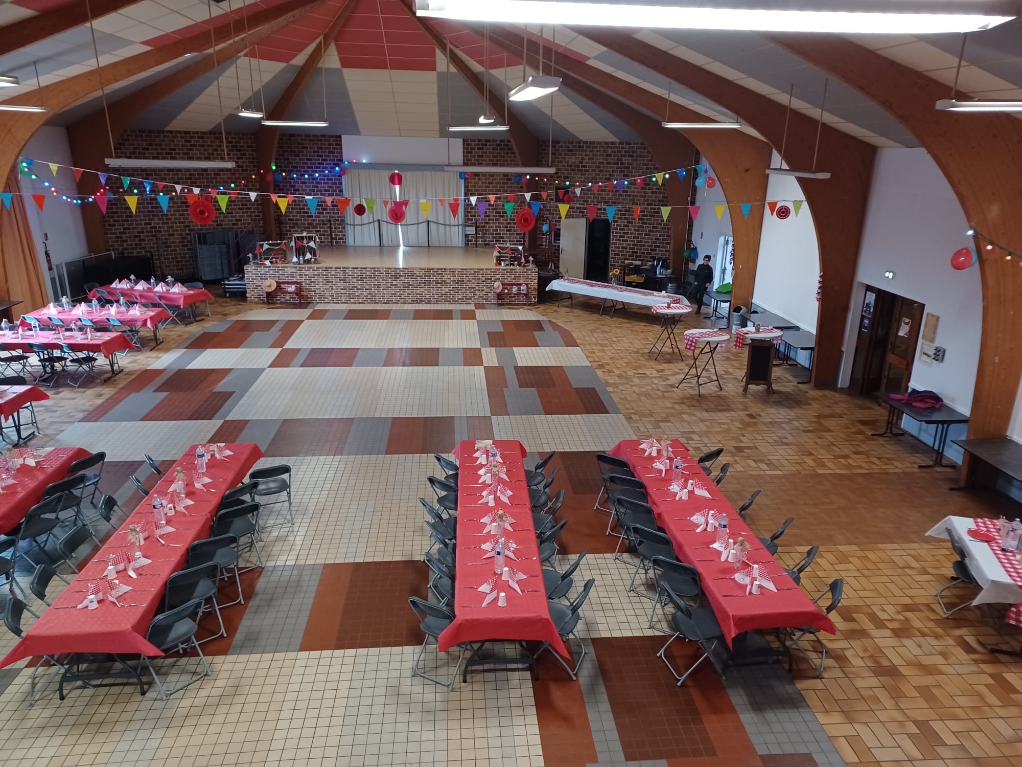 La salle des fêtes permet d’accueillir 250 personnes et dispose d’une cuisine équipée.